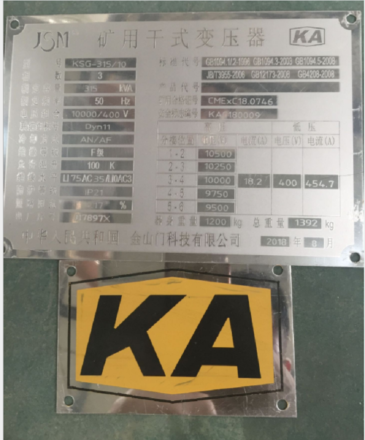 變壓器按GB3836.1-83《性環(huán)境用防爆電氣設備通用要求》GB3836.2-83《性環(huán)境防爆電氣設備隔爆型電氣設備“d”》等有關標準設計。制造與檢驗。有KY和KA認證,質量可靠。