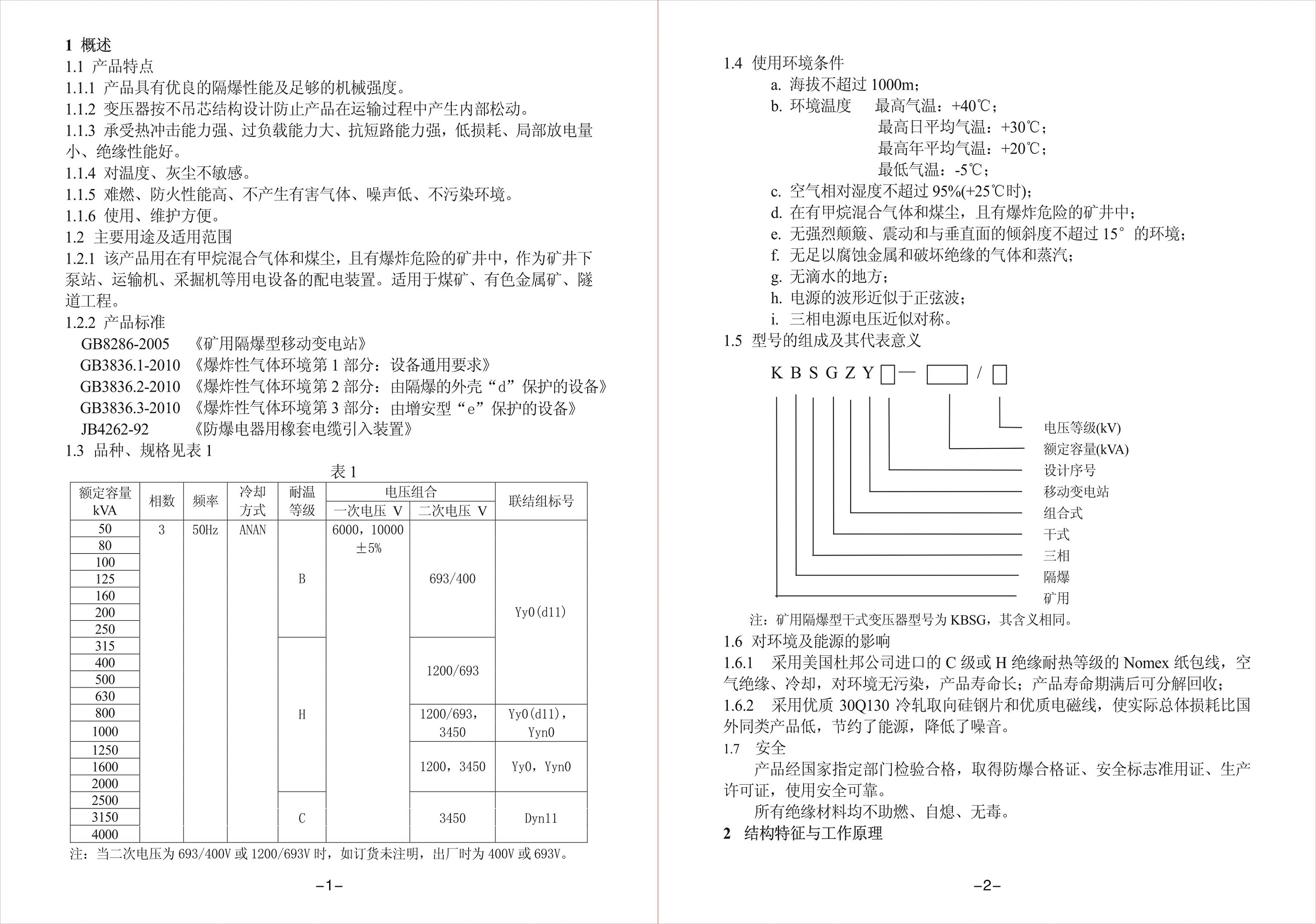 、KBSGZY-1000、KBSGZY-1600 、KBSGZY-2000,和礦用隔爆型干式變壓器KBSG容量從KBSG-50、KBSG-100、 KBSG-200、 KBSG-250